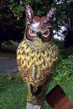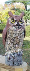 Molded Great Horned Owl this realistic owl should last a lifetime. Used to protect crops, keep pigeons away, or help in keeping seagulls from your boat. The Rotating Head Owl is as realistic and hand-painted as the original Great Horned Owl, except the head rotates when it senses movement.