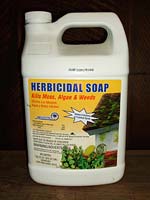 HERBICIDAL SOAP is a fast acting weed, algae, and moss killer. It is also a non-selective herbicide that controls many common annual weeds. It does not stain concrete, pavement, stucco, or wood. Area can be re-sown five days after treatment. Store at temperatures above 39°F.
